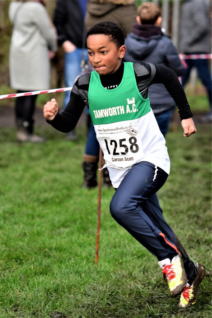 The Under-11 Boys were raring to go by the time the gun fired. Thomas Beales was first back for Tamworth in 12th place with a time of 8:24. Dominic Harper again gave Thomas a run for his money; his sprint finish not quite enough to catch his team mate but giving him a remarkable 13th place and time of 8:25. The pair also occupy 12th and 13th place in the overall standings going into the final race next month. Jack Dolan had another great race, taking 19th place with 8:37, as did twin brother Oliver in 31st place on 9:01. George Haddock has progressed well over the season and gave his all to complete the scoring five for Tamworth in 61st place with 9:38. Ellis Jones was next in 87th with 10:06, followed by Thomas Ladkin in 92nd with 10:16 and Carson Scott in 103rd with 10:51. Another excellent effort for the boys was rewarded with 4th place in the team standing on the day. They remain in 5th place overall but now level on points with Rugby & Northampton AC in 4th and within reach of Stratford upon Avon AC in 3rd place.