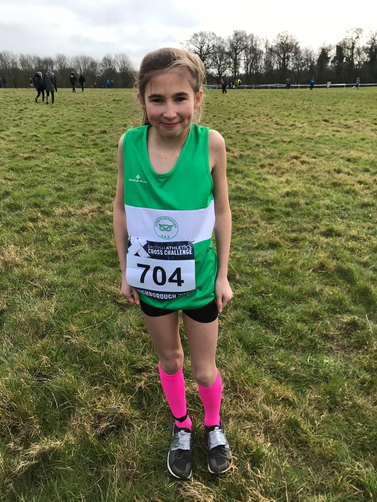 Jessica Salt’s excellent season and a 4th place finish at the county championships earned her first Staffordshire vest in the Under-13 Girls team. Jessica who has been struggling with a calf niggle in recent weeks, gave it her all on the 3km course to take 220th place in a huge field of athletes with a time of 17 minutes.