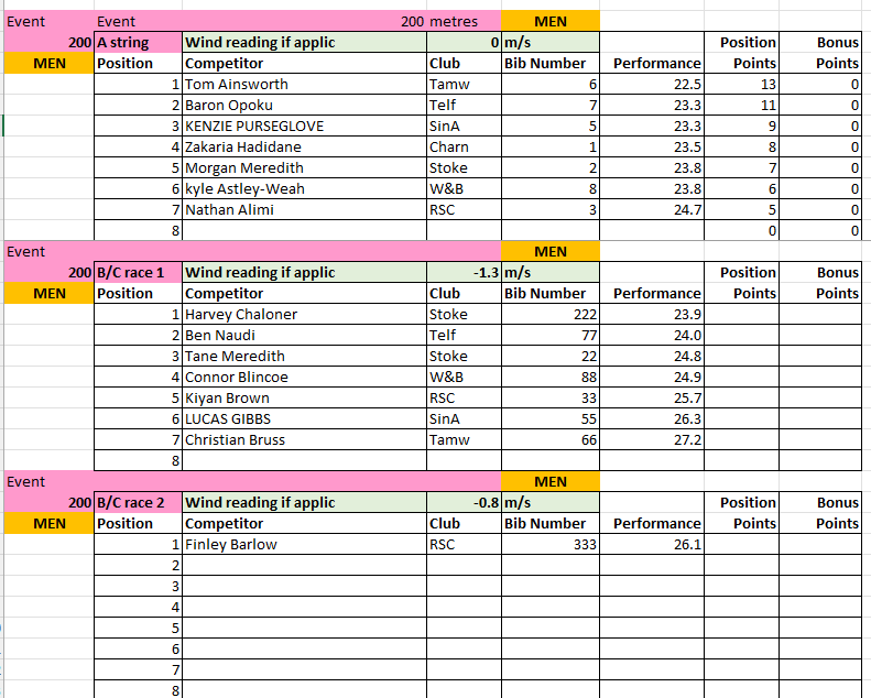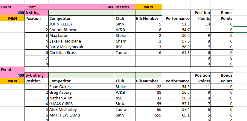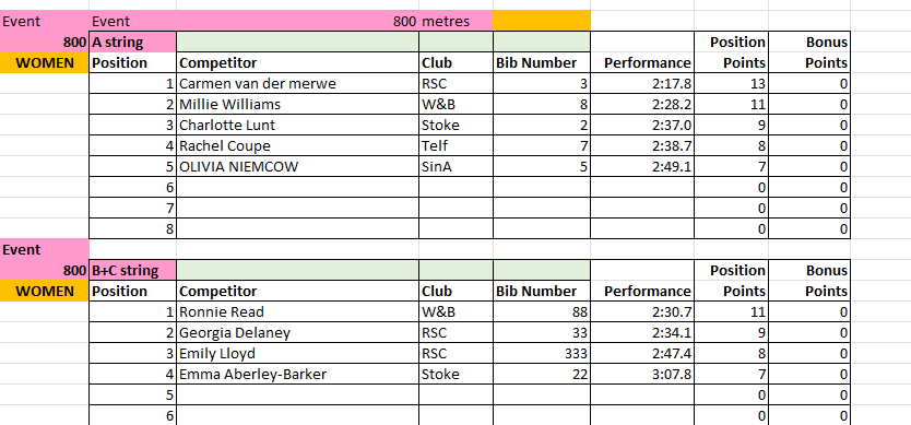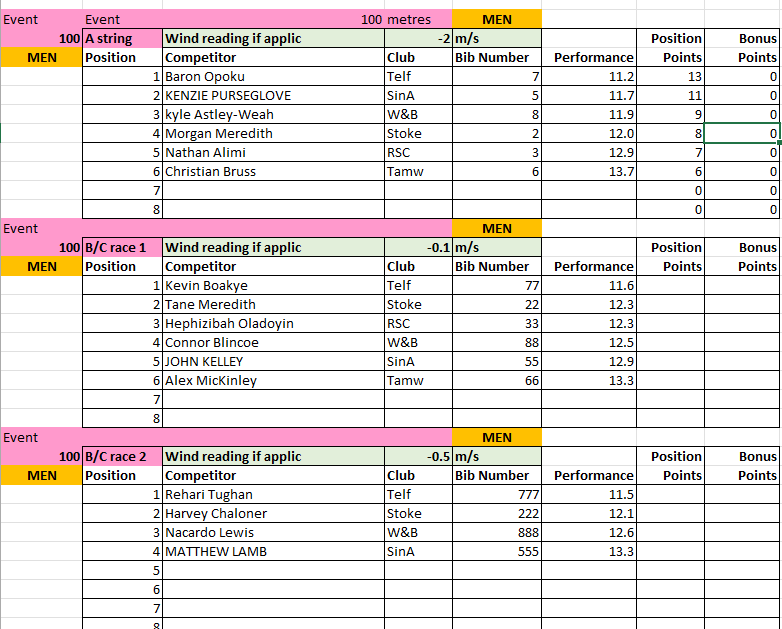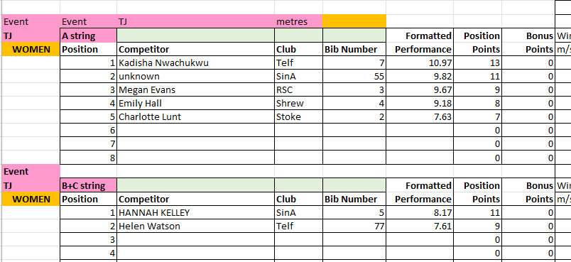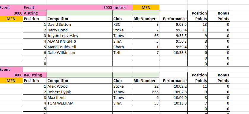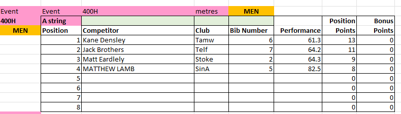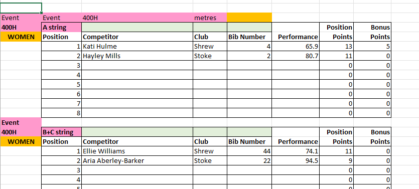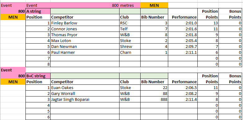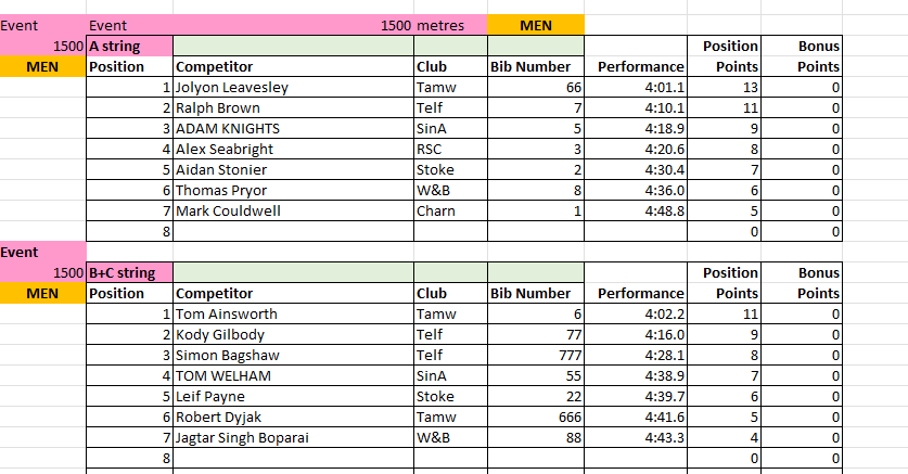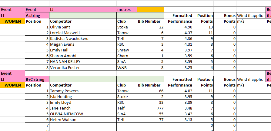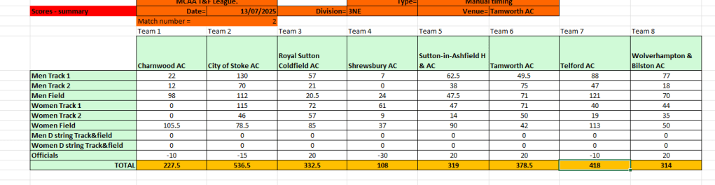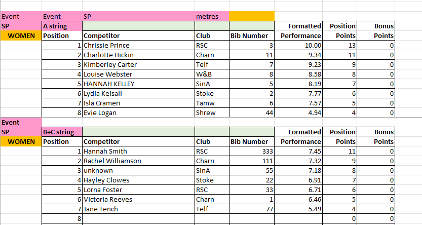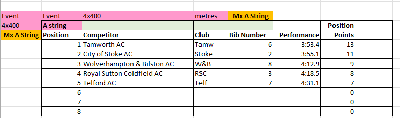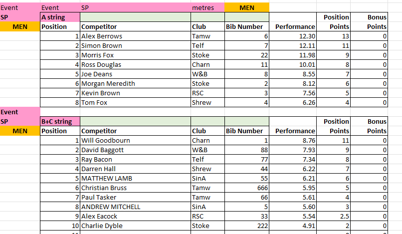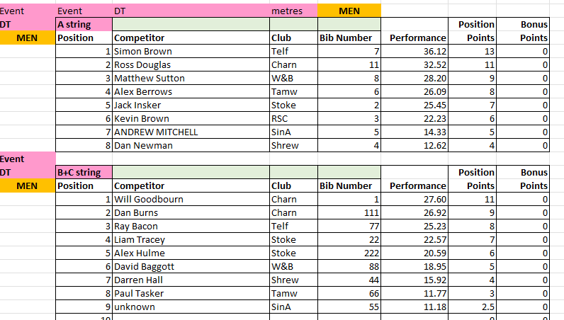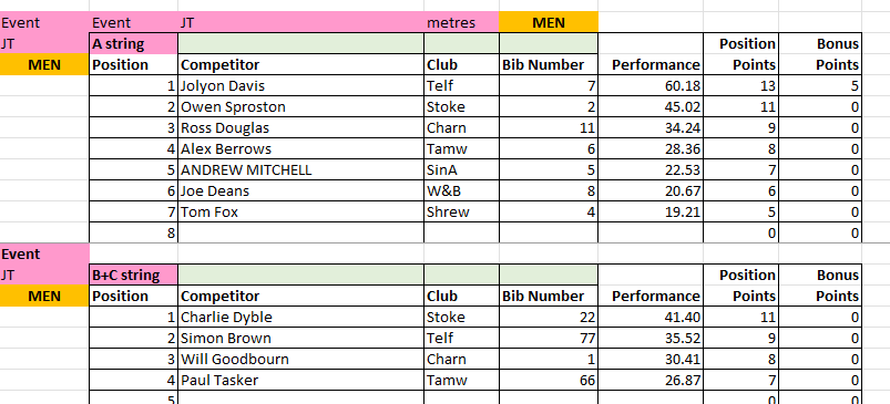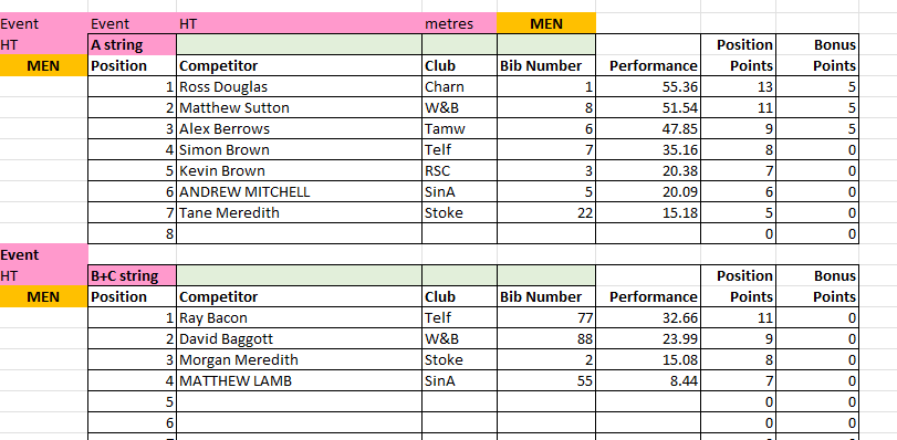 The results from Match 2 at Tamworth AC will be uploaded to this page periodically throughout the day, and will be removed at the end of the day for submission to the League.
